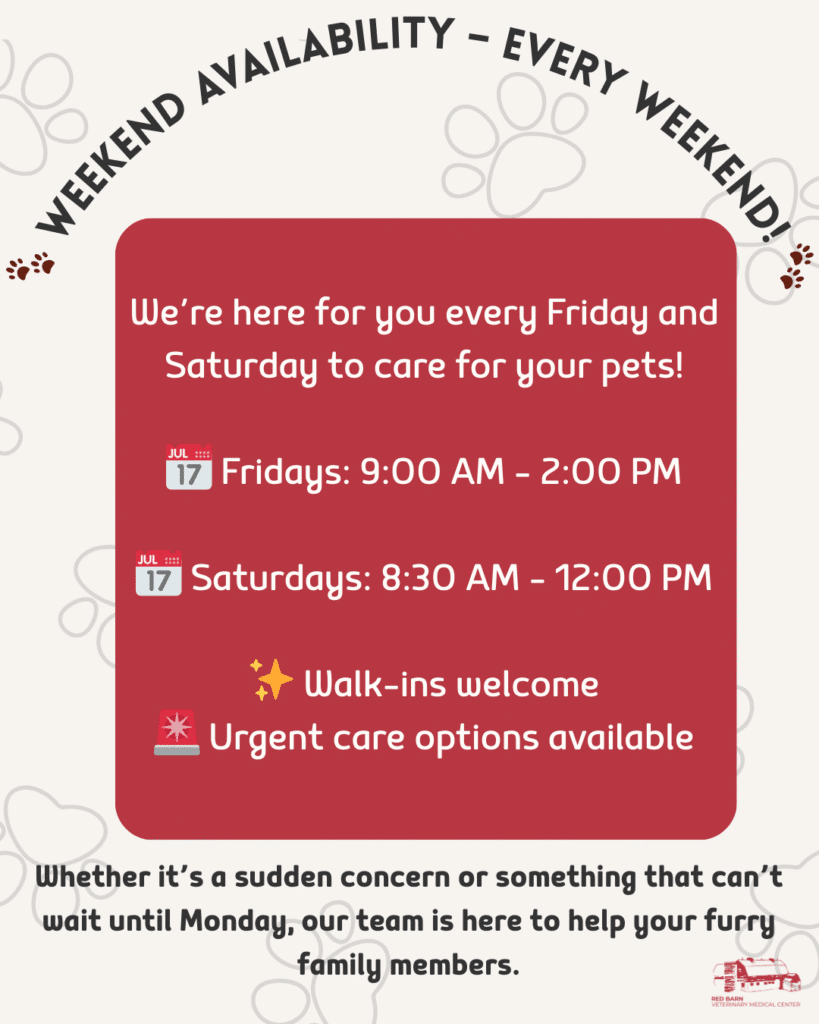 At Red Barn Veterinary Medical Center, we treat your pets like family. Our team proudly provides personalized, trustworthy veterinary care in a warm and welcoming environment.